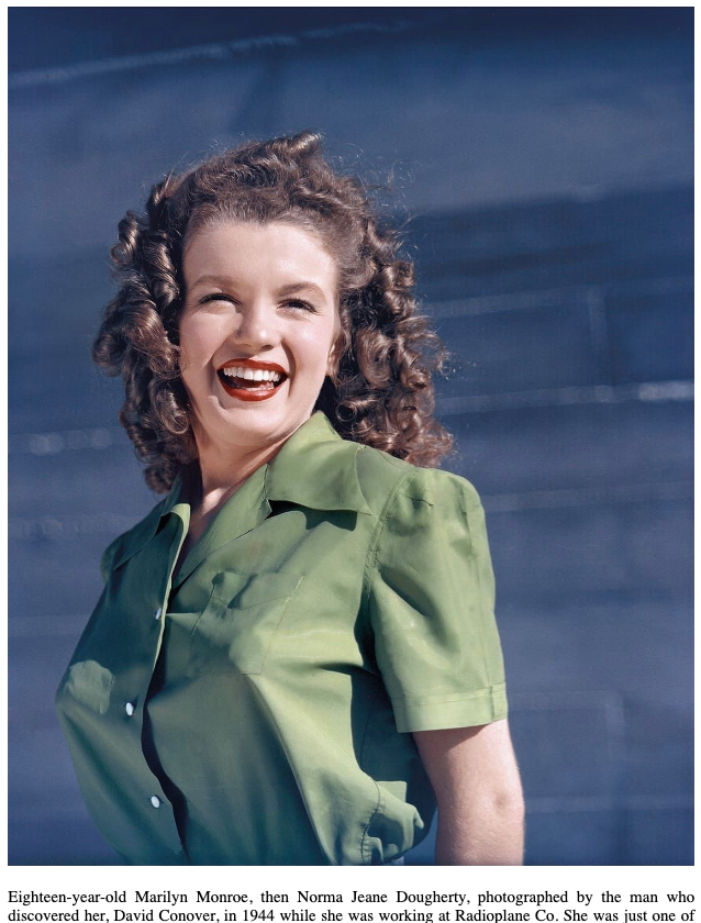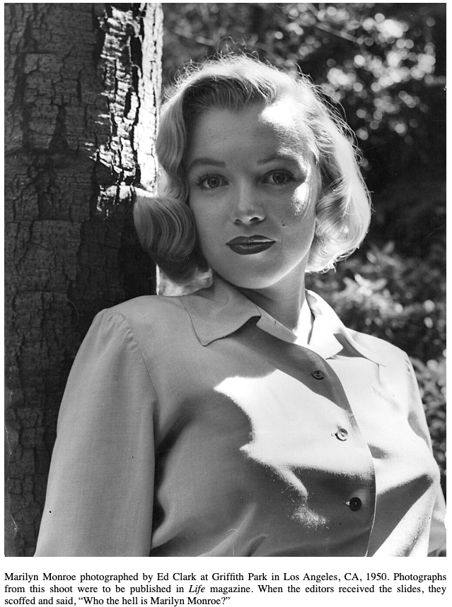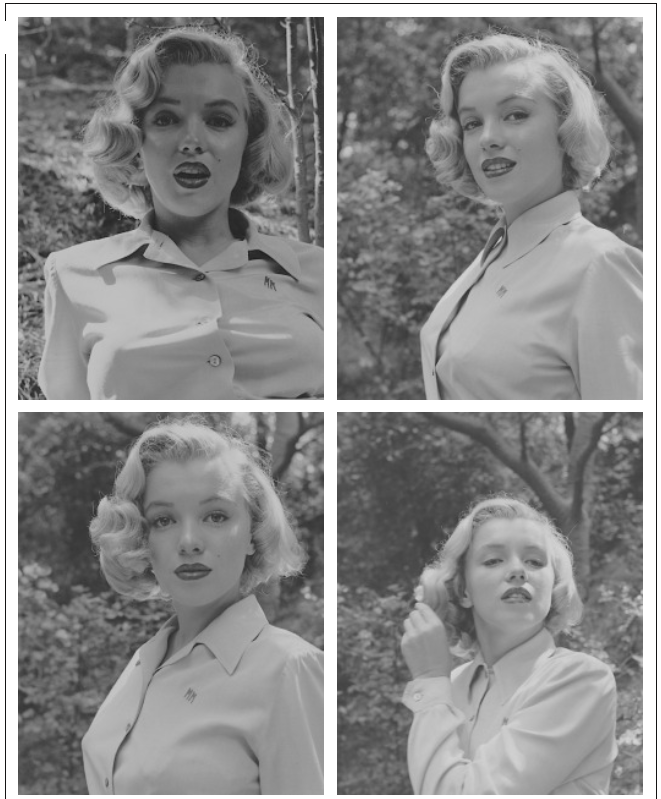 En su preparación para modelo, Marilyn había pasado horas y horas frente al espejo aprendiendo a coquetear usando solamente sus hombros, luego inclinaba su cabeza hacia atrás y ligeramente de lado mostrando su carótida en un tierno y seductor gesto de vulnerabilidad. Marilyn con su nuevo cabello era simplemente magnética.